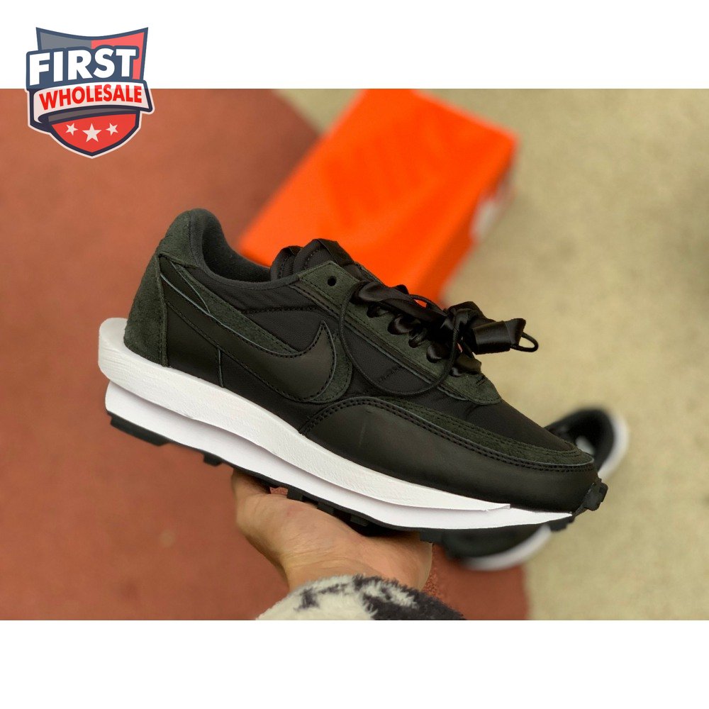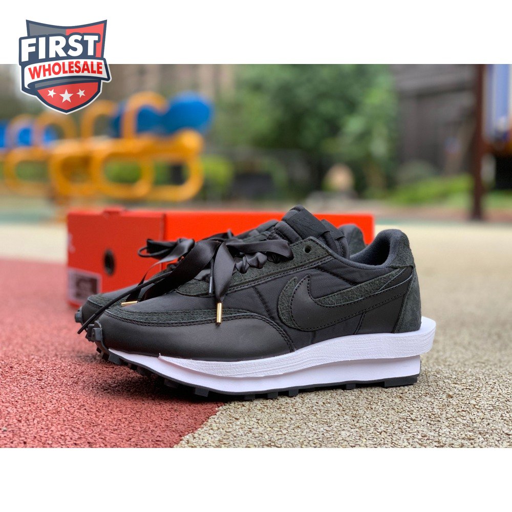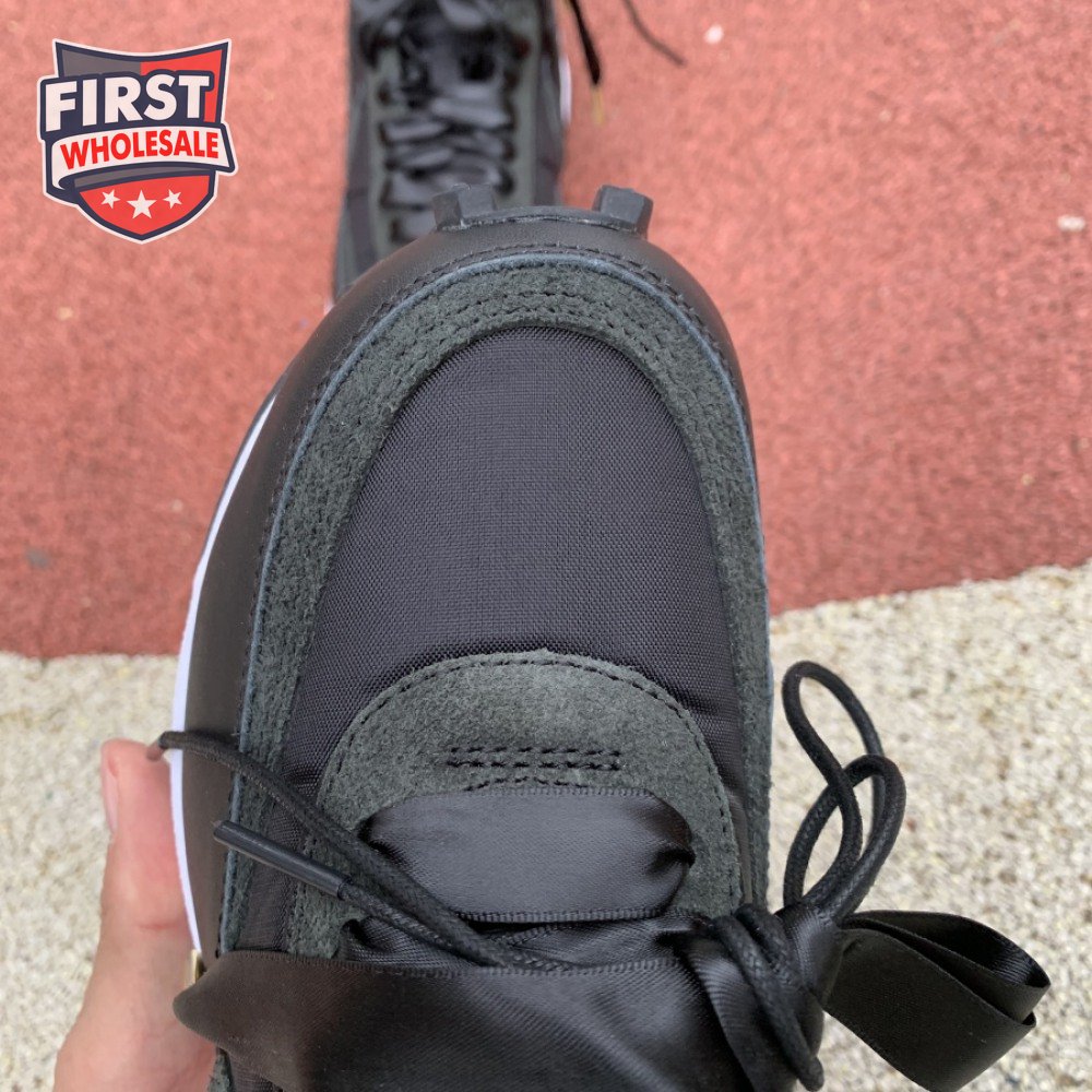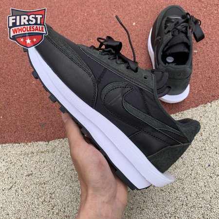 The Sacai x LDWaffle 'Black Nylon' delivers a monochromatic take on one of 2019"s most popular sneaker collaborations. Like its predecessors, this pair features a double-themed design on a hybrid runner that combines elements from the Nike LDV and Waffle Racer. The all-black nylon upper, featuring doubled-up Swooshes, tongues and laces, rides on an elongated midsole in contrasting white.