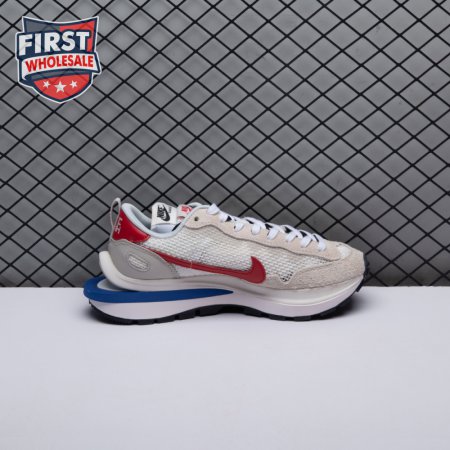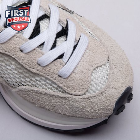 Made in partnership with the progressive Japanese fashion label, the Sacai x Nike VaporWaffle "Black White" repeats many of the design tropes introduced on the brands" LDV Waffle collaboration from 2019. They include doubled tongues, doubled Swooshes and a stacked midsole, updated here with split construction at the heel. Up top, open off-white mesh is fortified with tonal suede overlays and a red leather heel tab marked with dual Nike and Sacai branding.