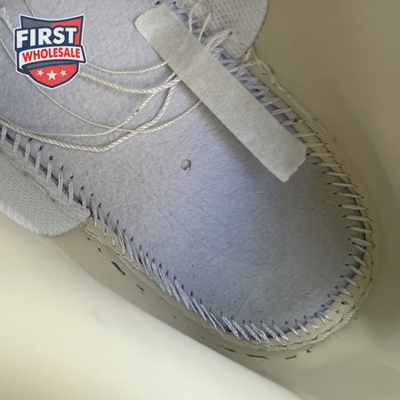 The Off-White x Air Max 97 "Menta" features a translucent textile upper finished in Wolf Grey, complemented by Virgil Abloh"s signature text and tonal zigzag stitching throughout. The neutral color scheme is disrupted by a multicolored Swoosh that transitions from green to blue to red, while underfoot, a smoky grey rubber outsole maintains the shoe"s translucent theme.