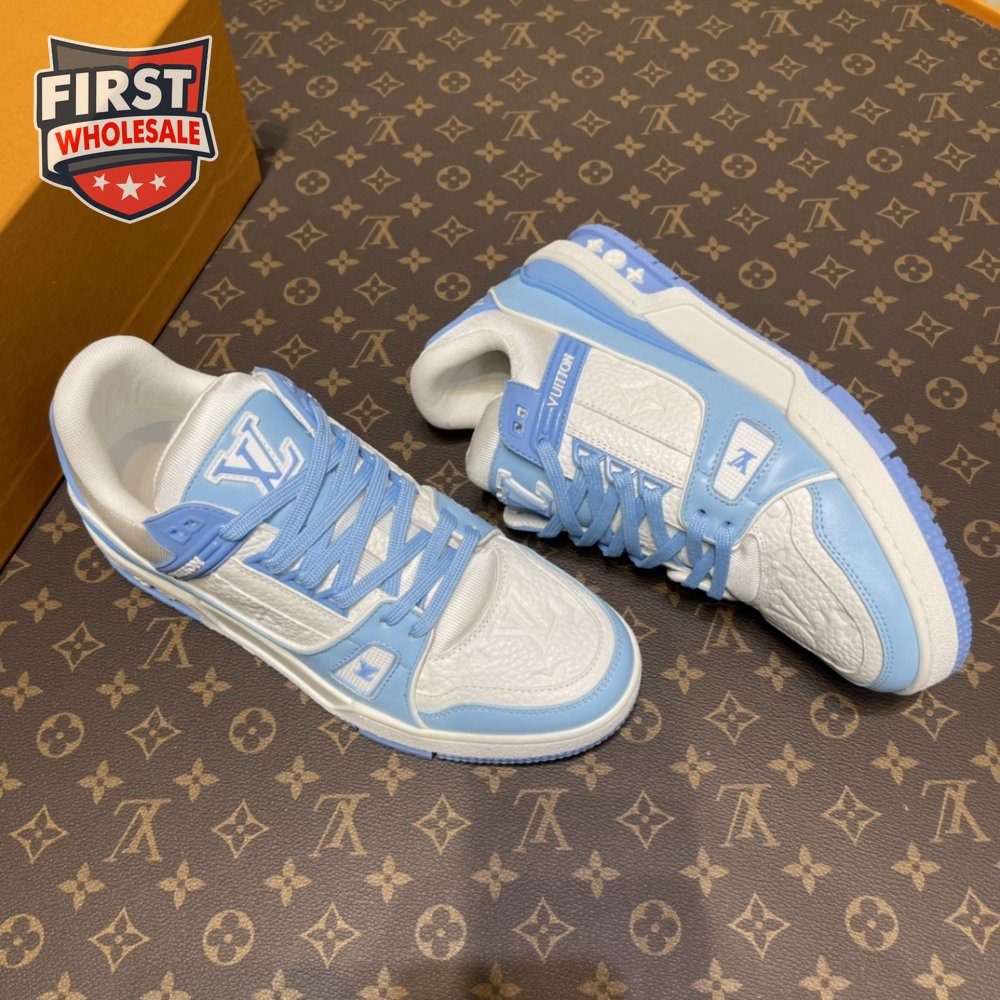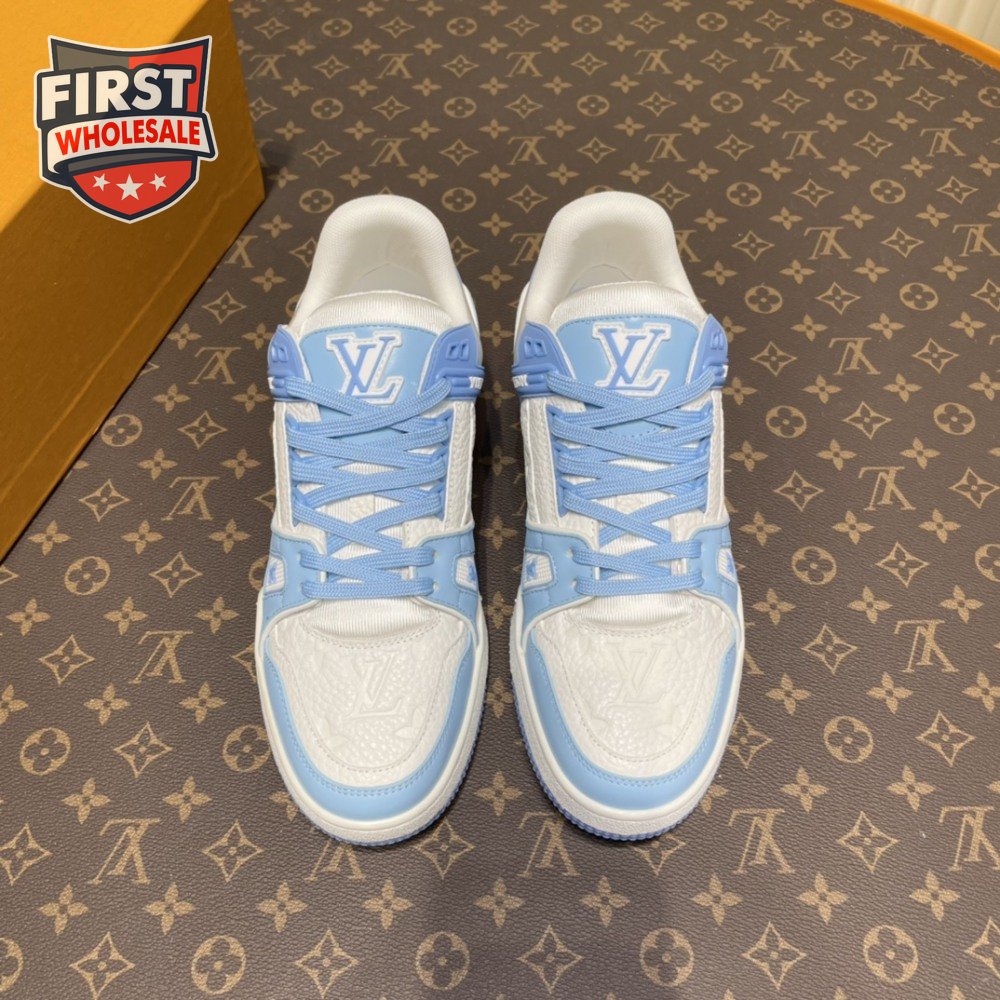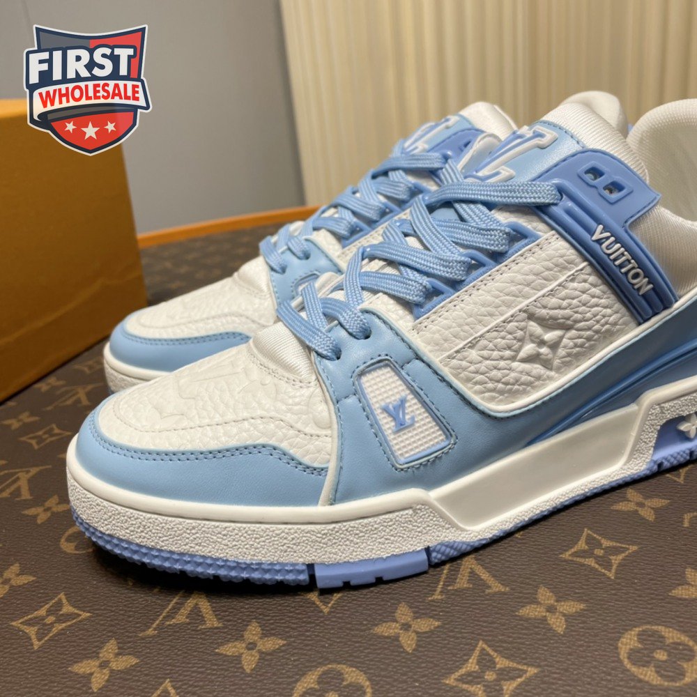 trainer low white blue