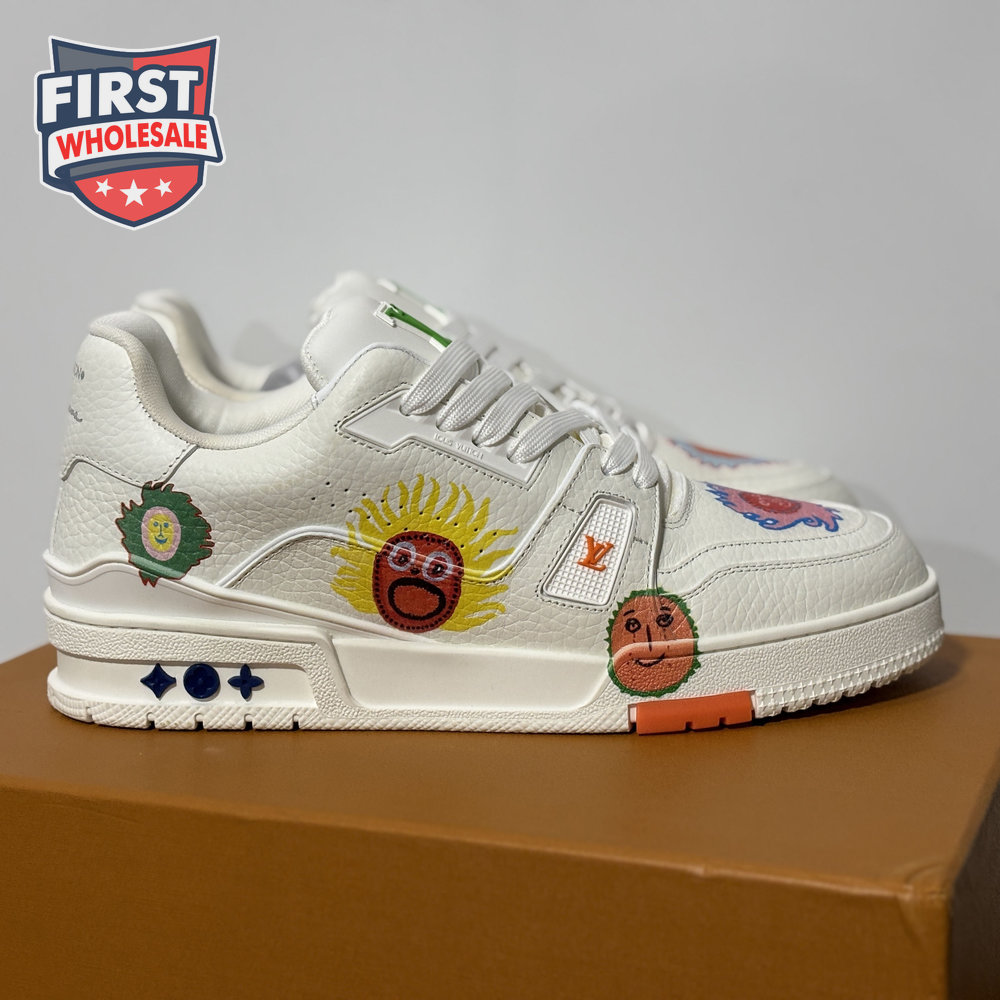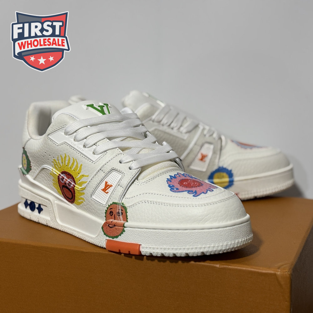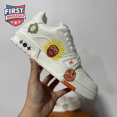 Trainer Silver White Floral Low-Top Sneaker