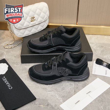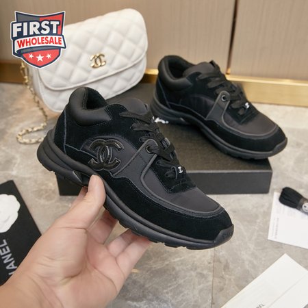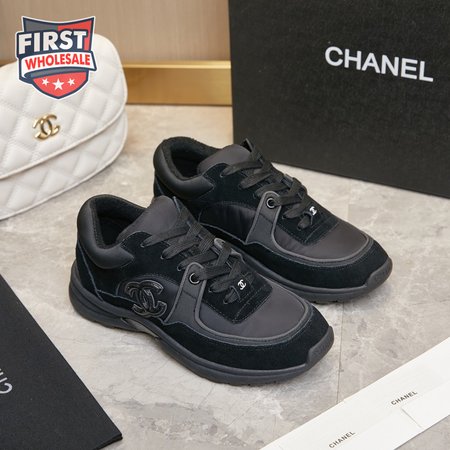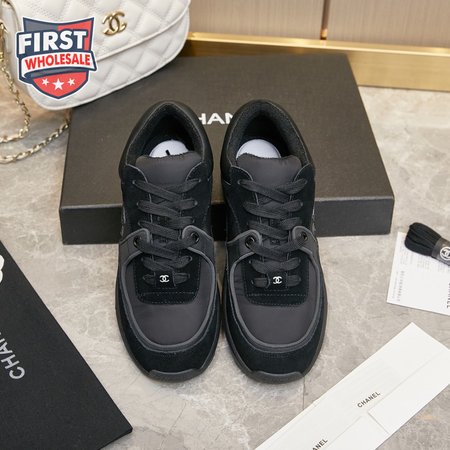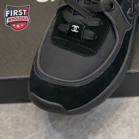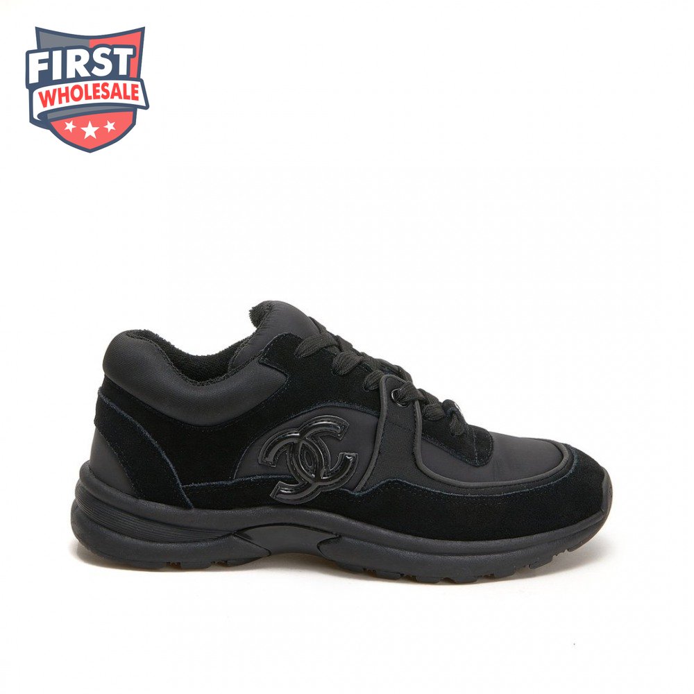 CHANEL LOW TOP TRAINER CC TRIPLE BLACK LEATHER - CC5