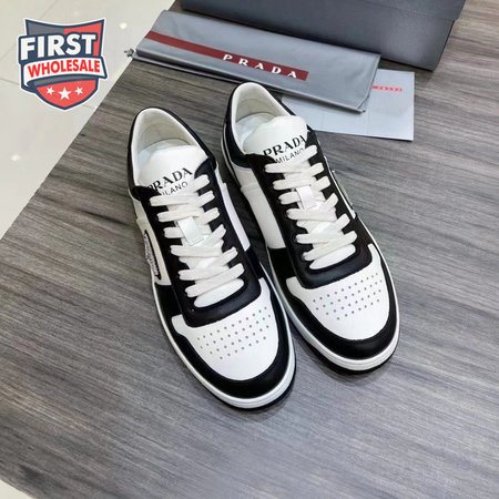 PRADA DOWNTOWN LOW TOP SNEAKERS LEATHER WHITE BLACK - PA003