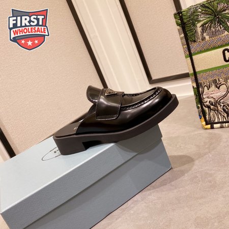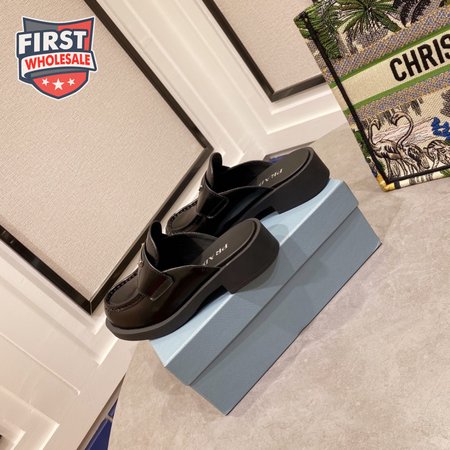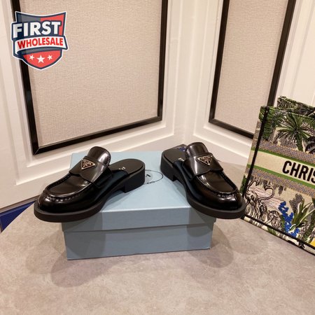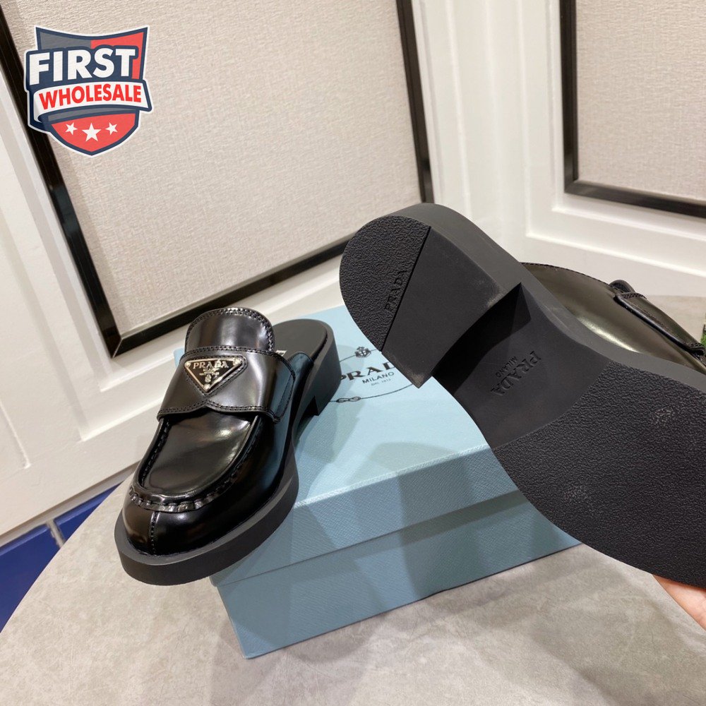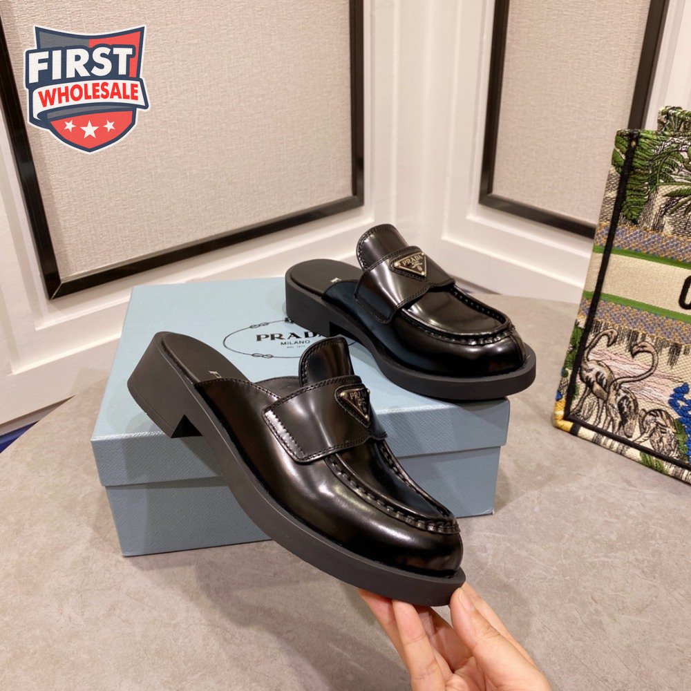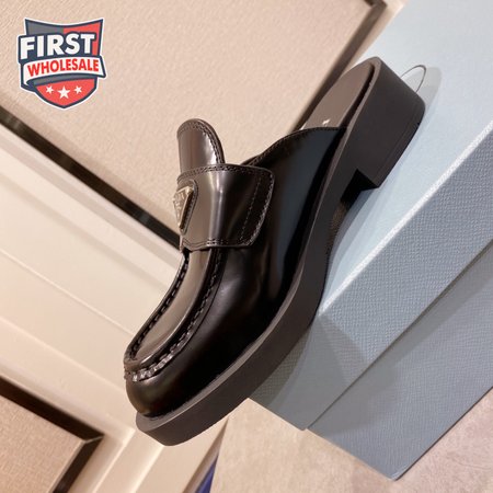 PRADA CHOCOLATE BRUSHED LEATHER MULES BLACK - PA005