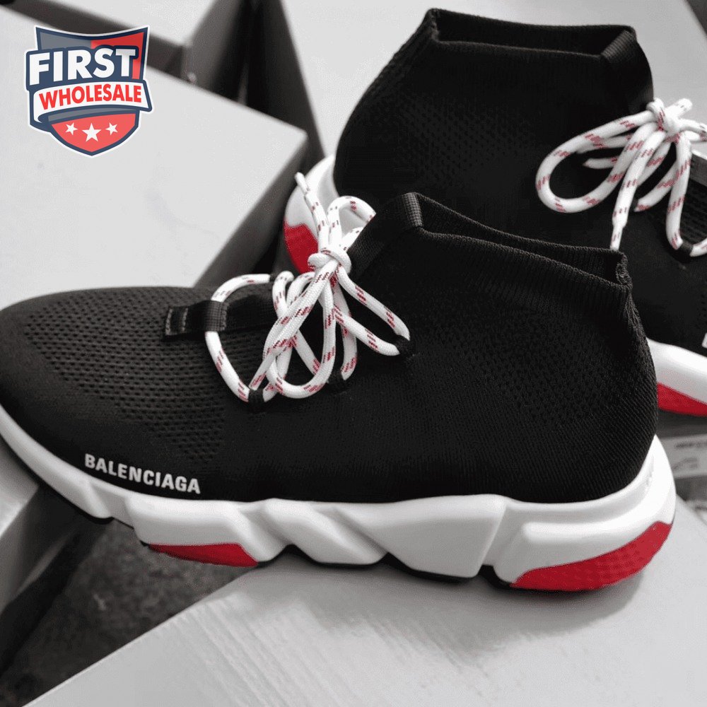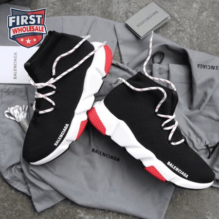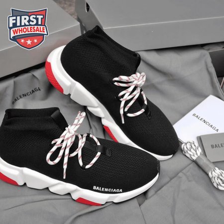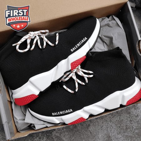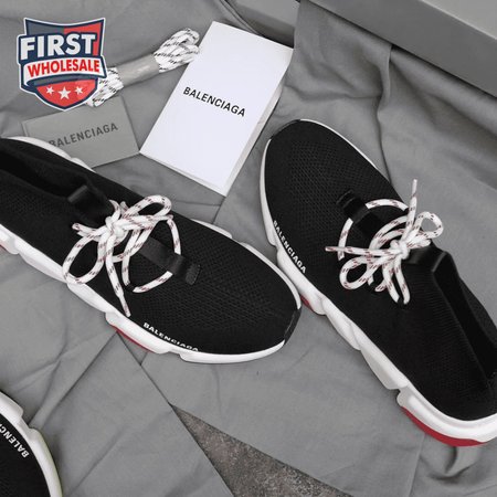 BALENCIAGA SPEED TRAINER LACE UP BLACK RED - BB15