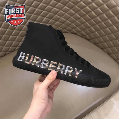 BURBERRY LOGO PRINT GABARDINE HIGH-TOP SNEAKERS - BBR82