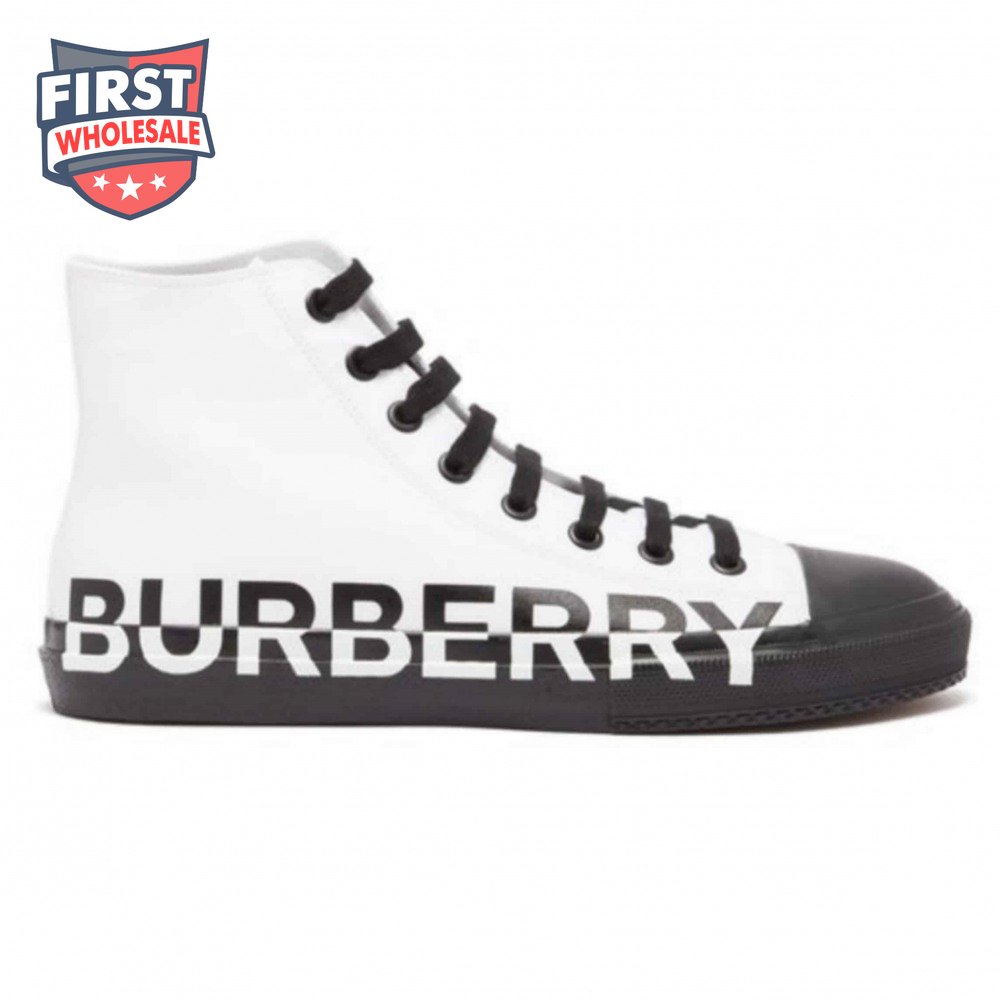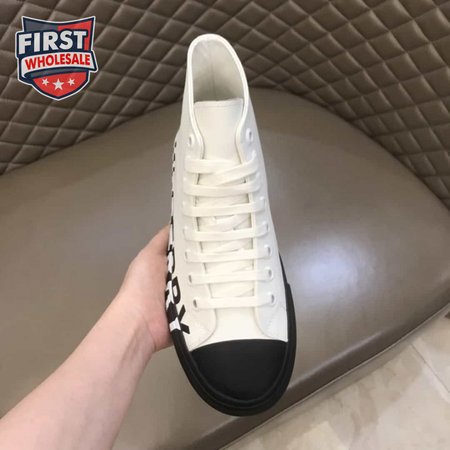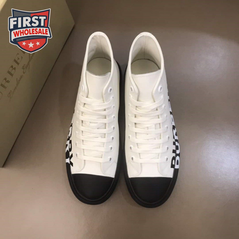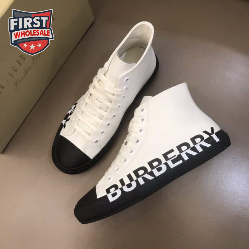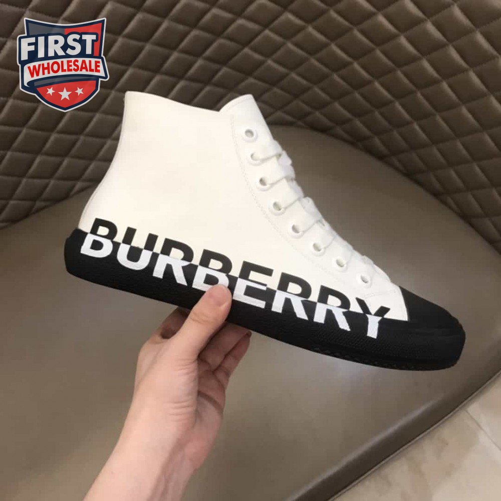 BURBERRY LOGO PRINT GABARDINE HIGH-TOP SNEAKERS - BBR32