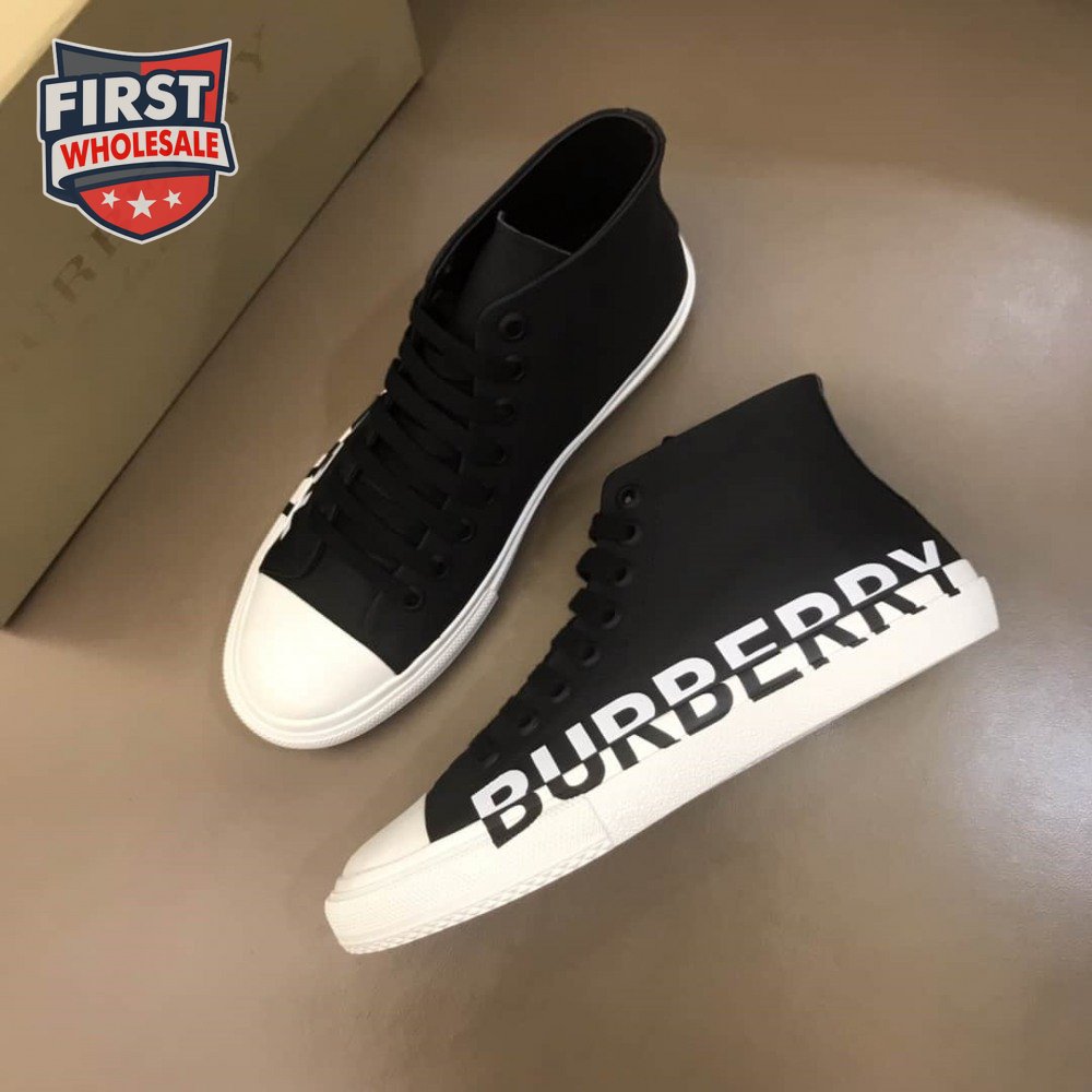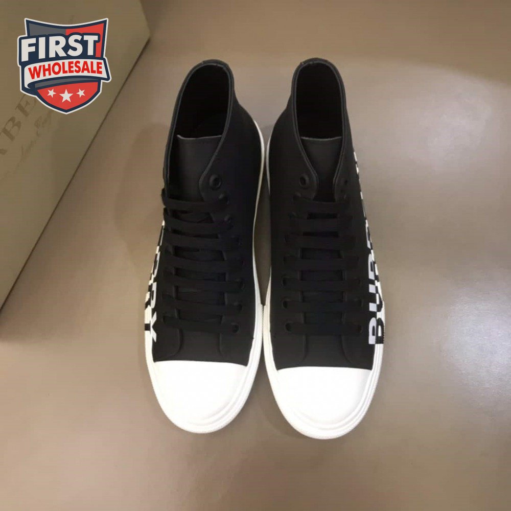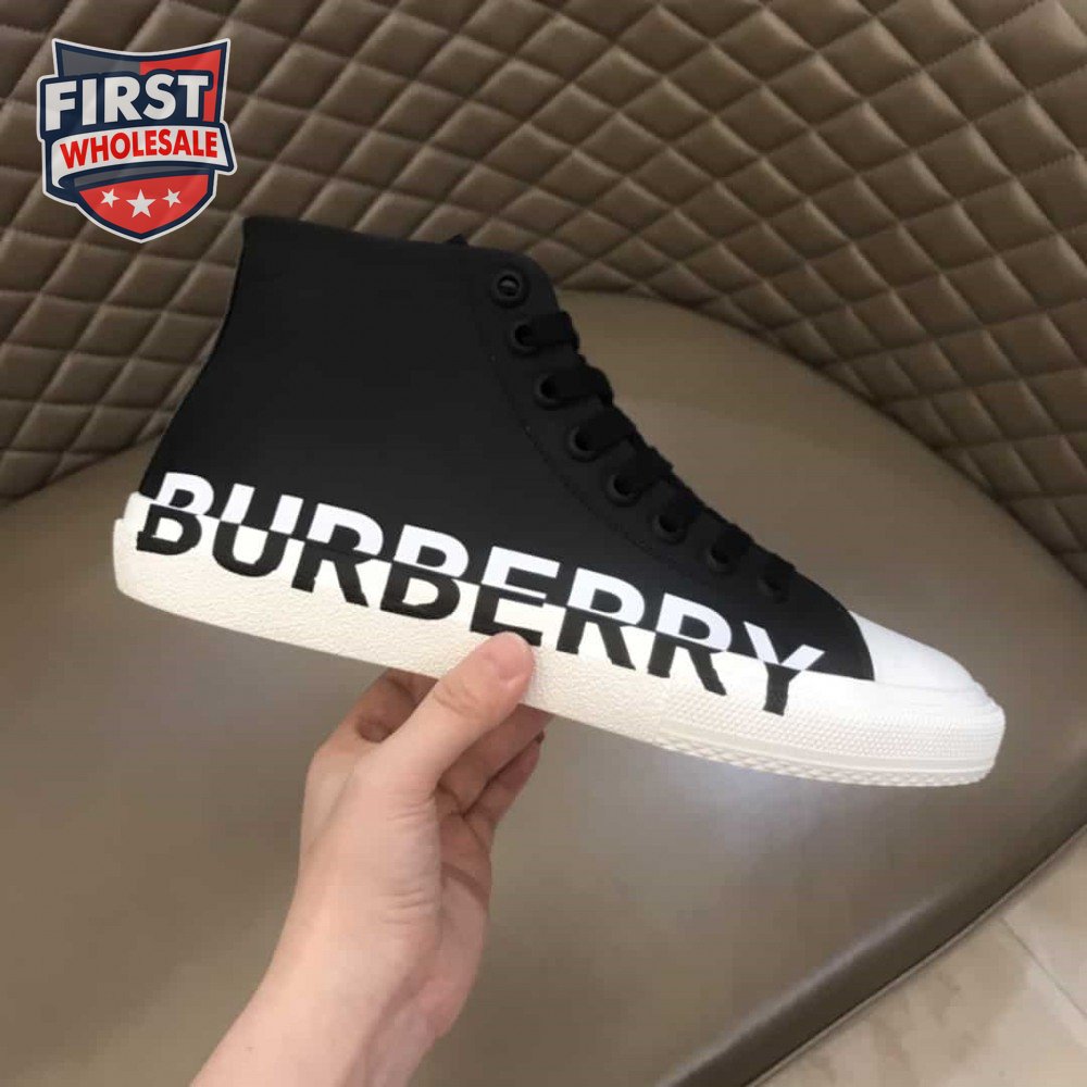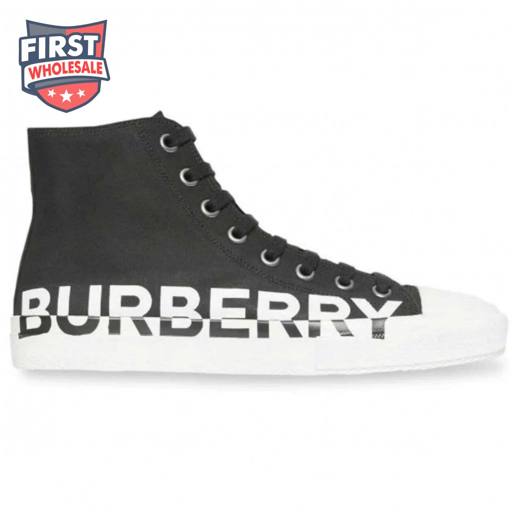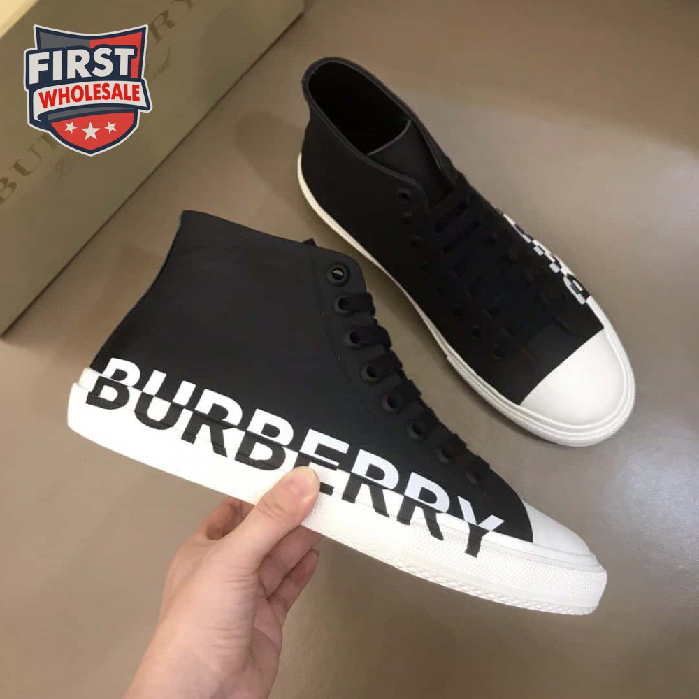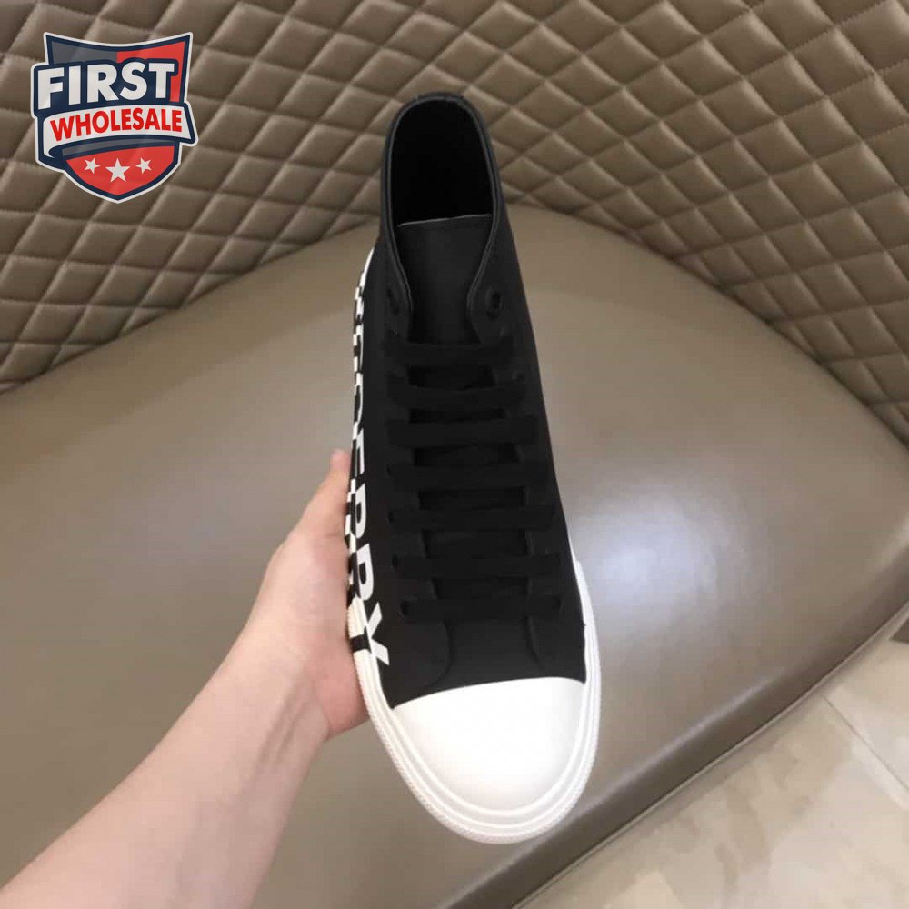 BURBERRY LOGO PRINT GABARDINE HIGH-TOP SNEAKERS - BBR31