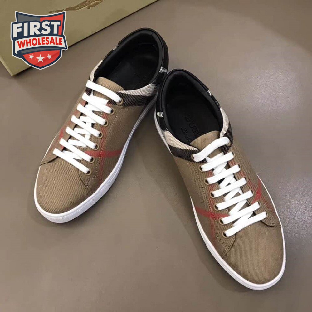 BURBERRY ALBERT HOUSE CHECK & LEATHER LOW-TOP SNEAKER - BBR3