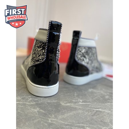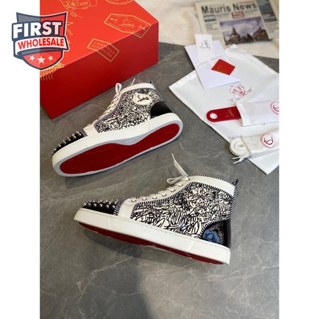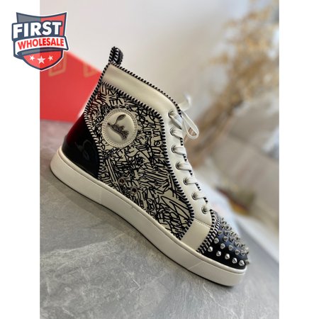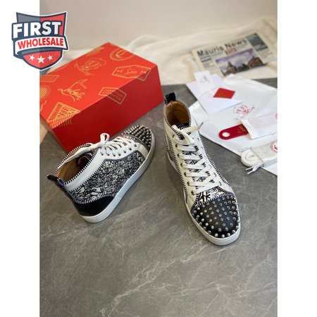 Christian Louboutin Black/White Leather Louis Orlato Spike Sneakers