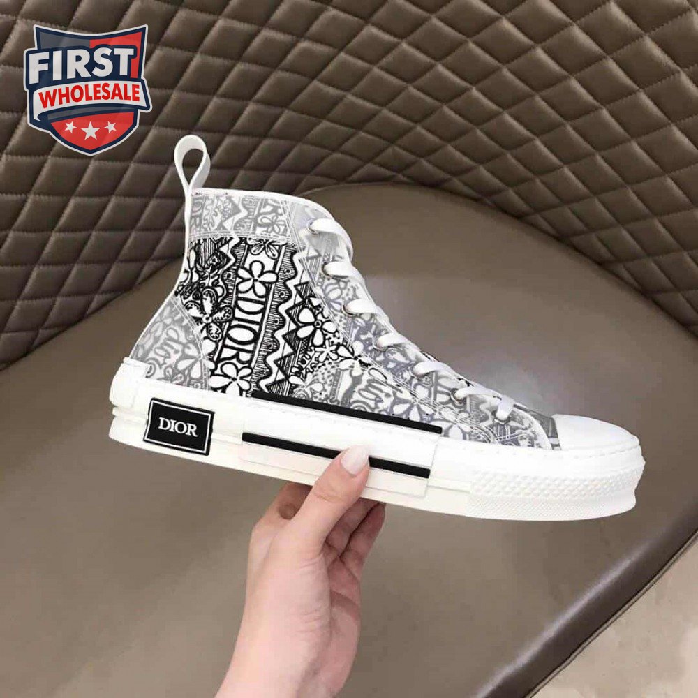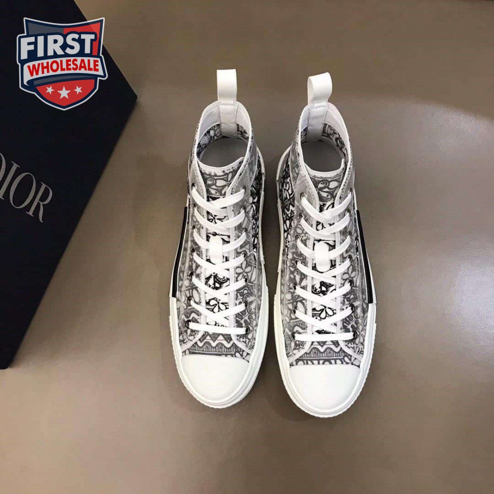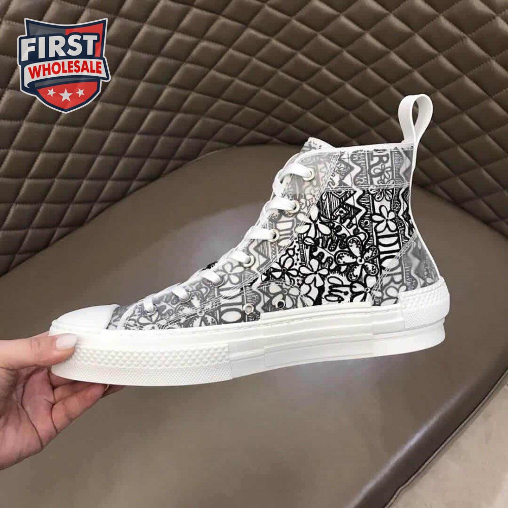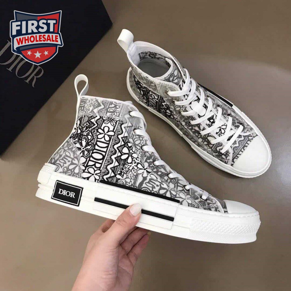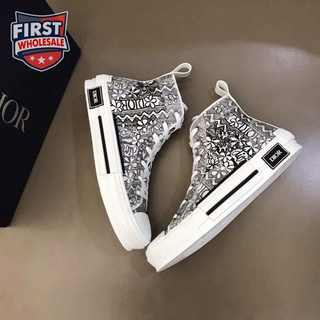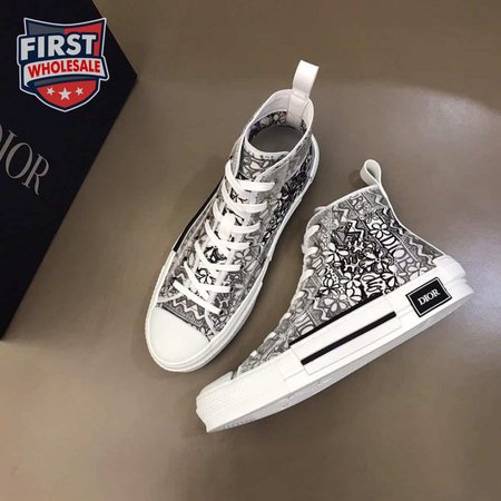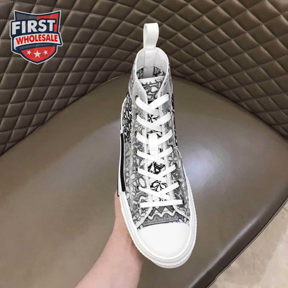 DIOR B23 HIGH-TOP SNEAKER WHITE CANVAS WITH DIOR AND SHAWN EMBROIDERY - CD73