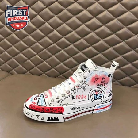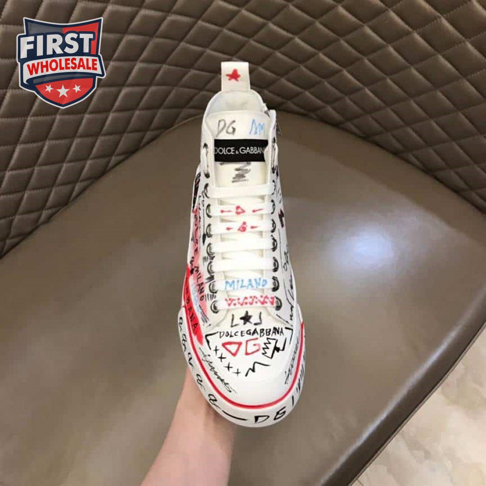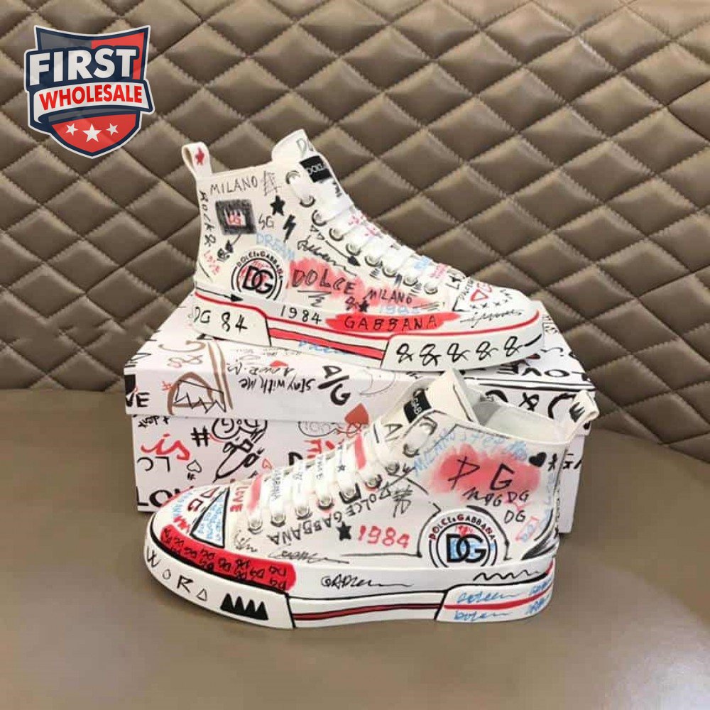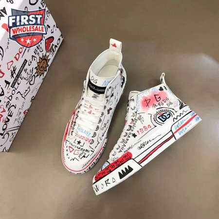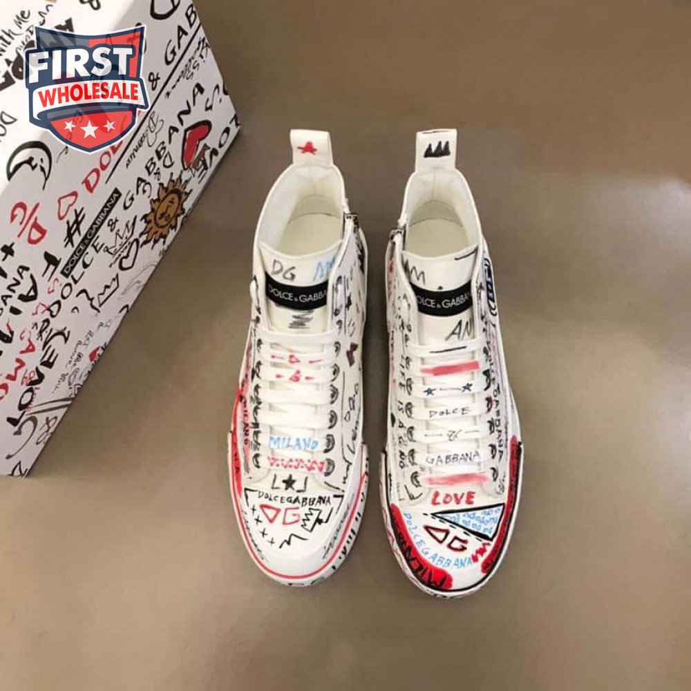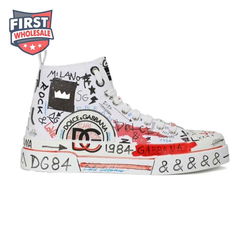 DOLCE AND GABBANA HAND-PAINTED GRAFFITI CANVAS PORTOFINO LIGHT MID-TOP SNEAKERS - DG111