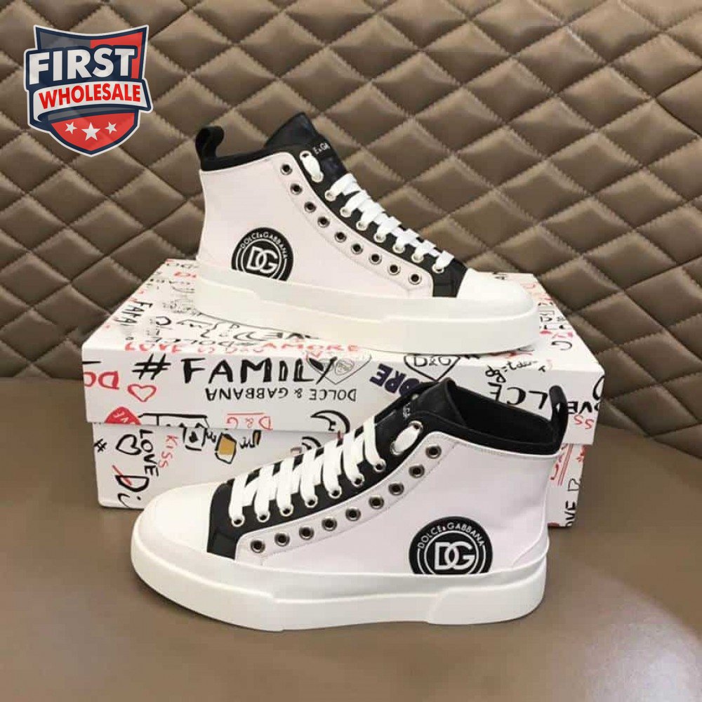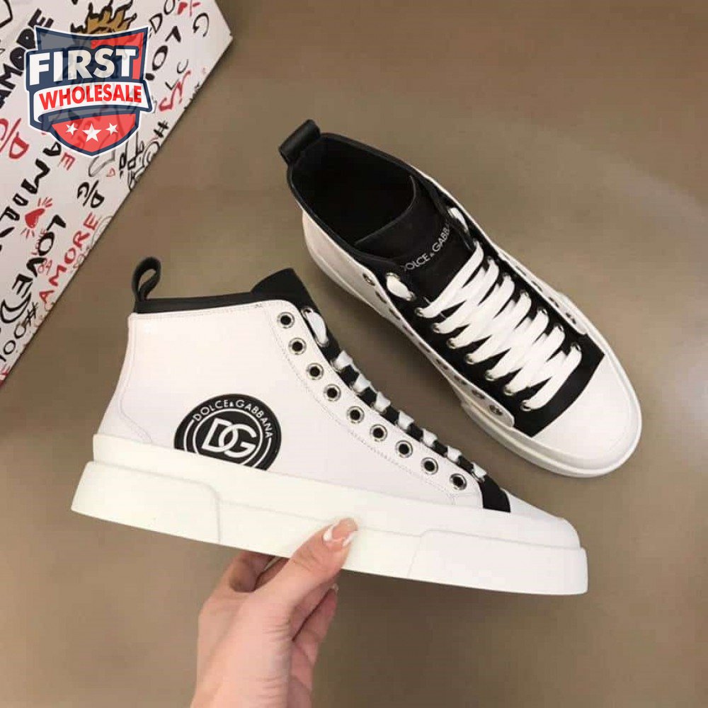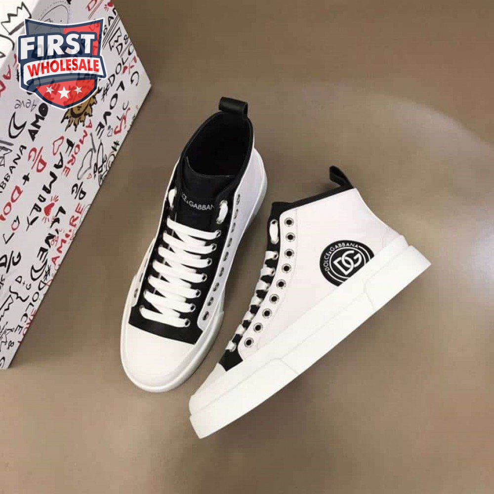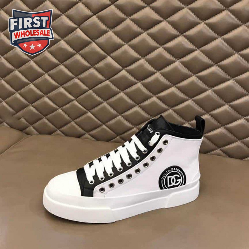 DOLCE AND GABBANA QUILTED TWO-TONE NYLON PORTOFINO LIGHT MID-TOP SNEAKERS IN WHITE - DG107
