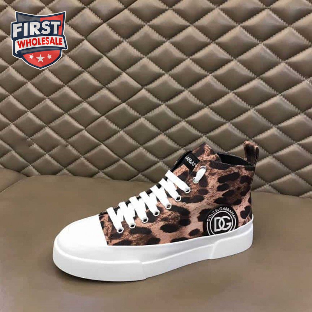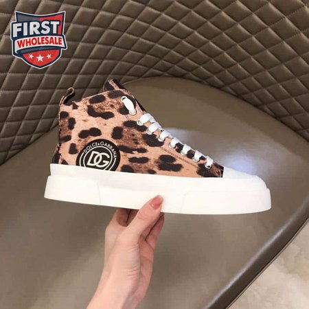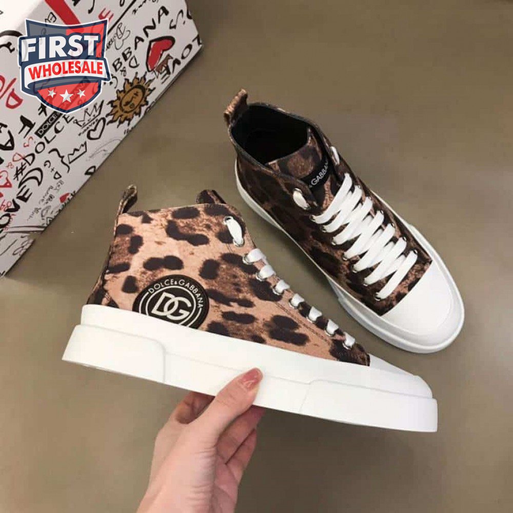 DOLCE AND GABBANA COTTON DRILL PORTOFINO LIGHT MID-TOP SNEAKERS WITH LEOPARD PRINT - DG110