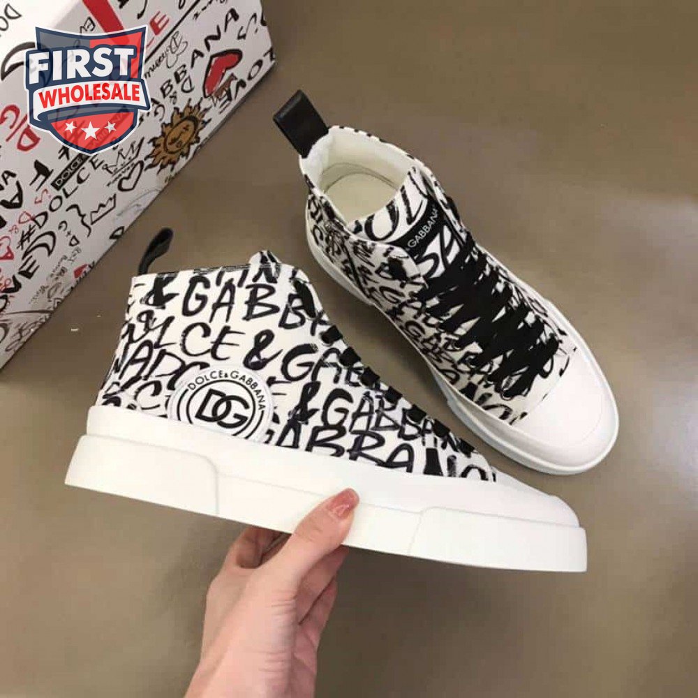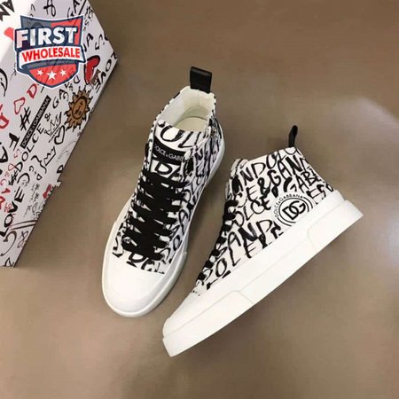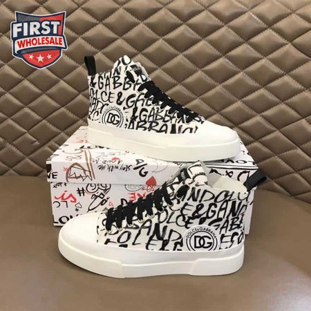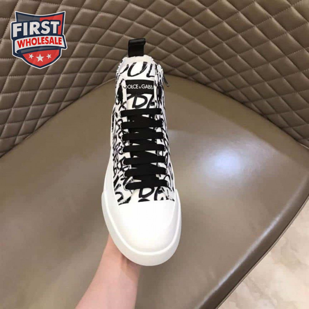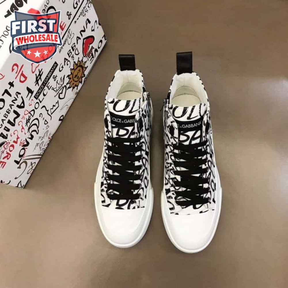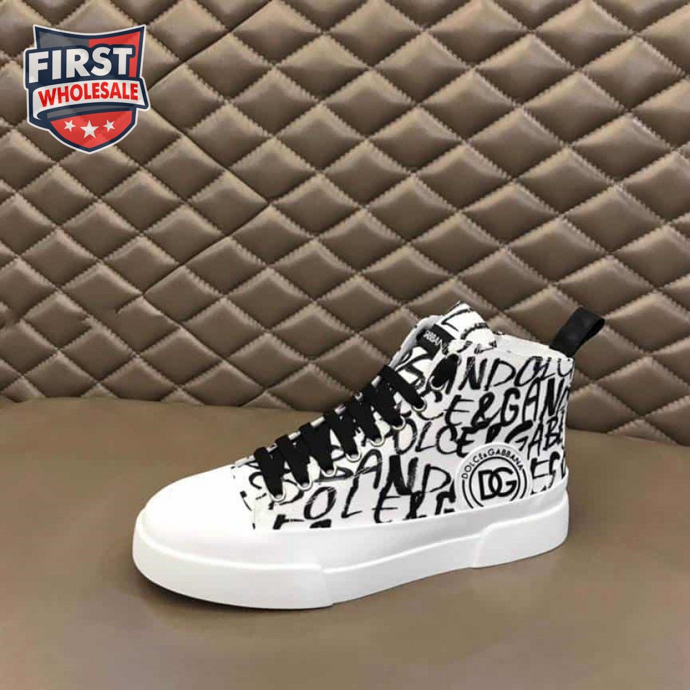 DOLCE AND GABBANA CANVAS PORTOFINO LIGHT MID-TOP SNEAKERS WITH DG LOGO PRINT - DG109