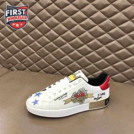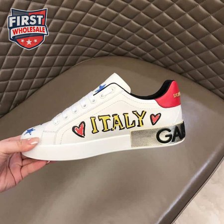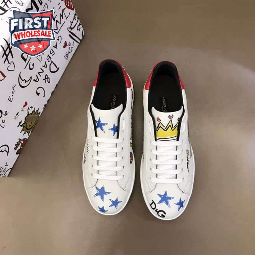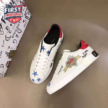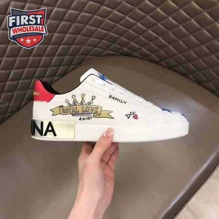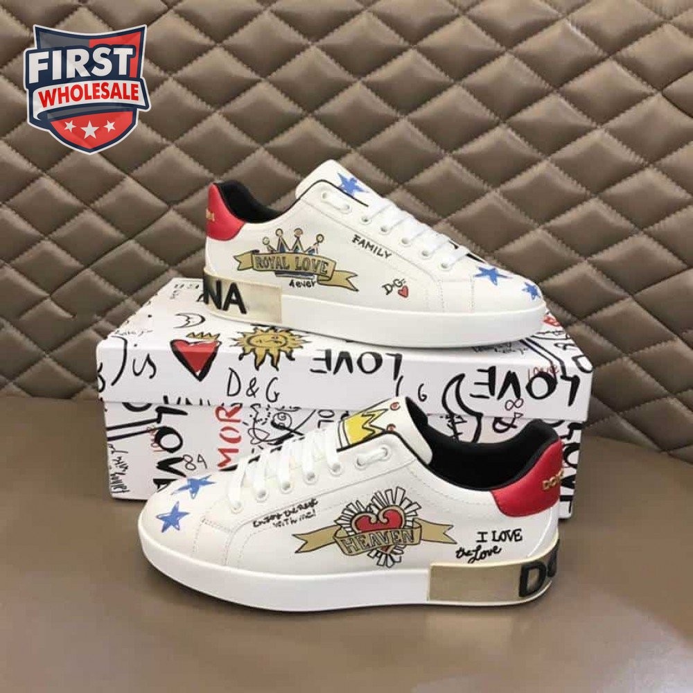 DOLCE AND GABBANA LEATHER ROYAL LOVE PRINT SNEAKERS IN WHITE - DG103