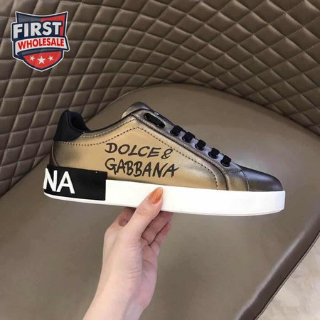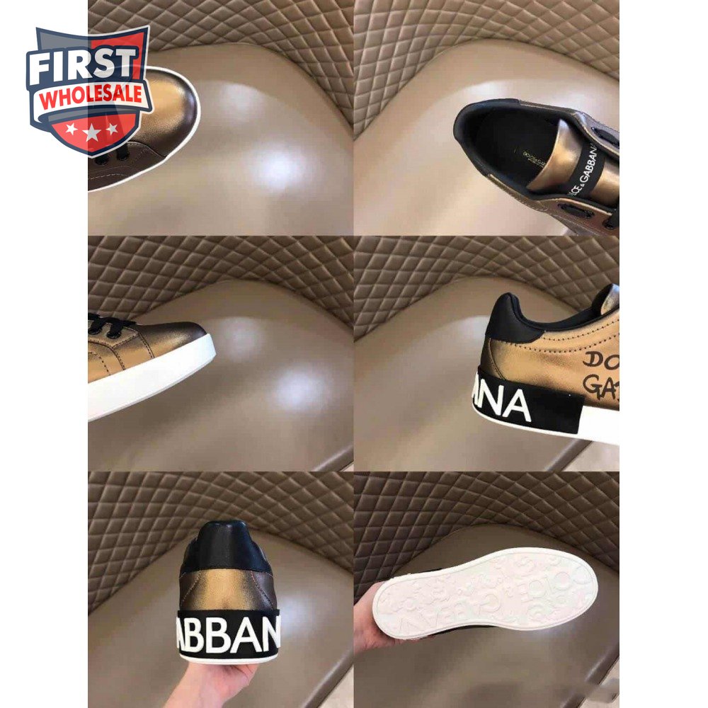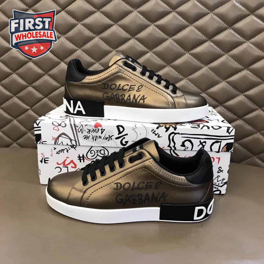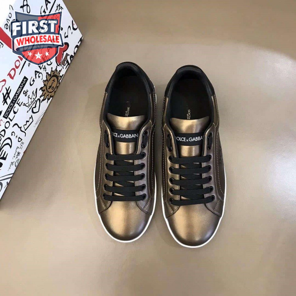 DOLCE AND GABBANA LOGO PRINT POSITANO LEATHER SNEAKERS - DG95