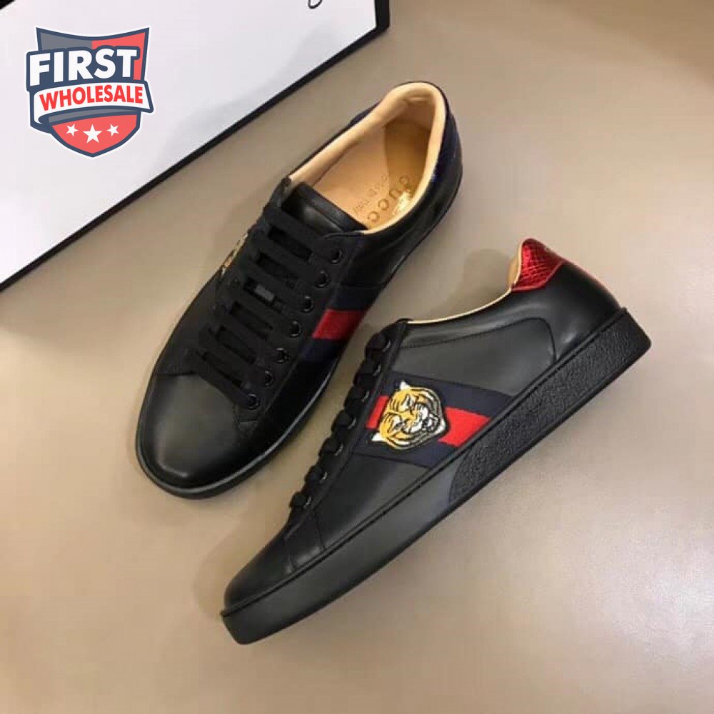 GUCCI TIGER ACE EMBROIDERED SNEAKER BLACK - GC49