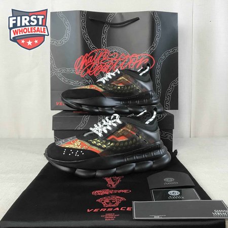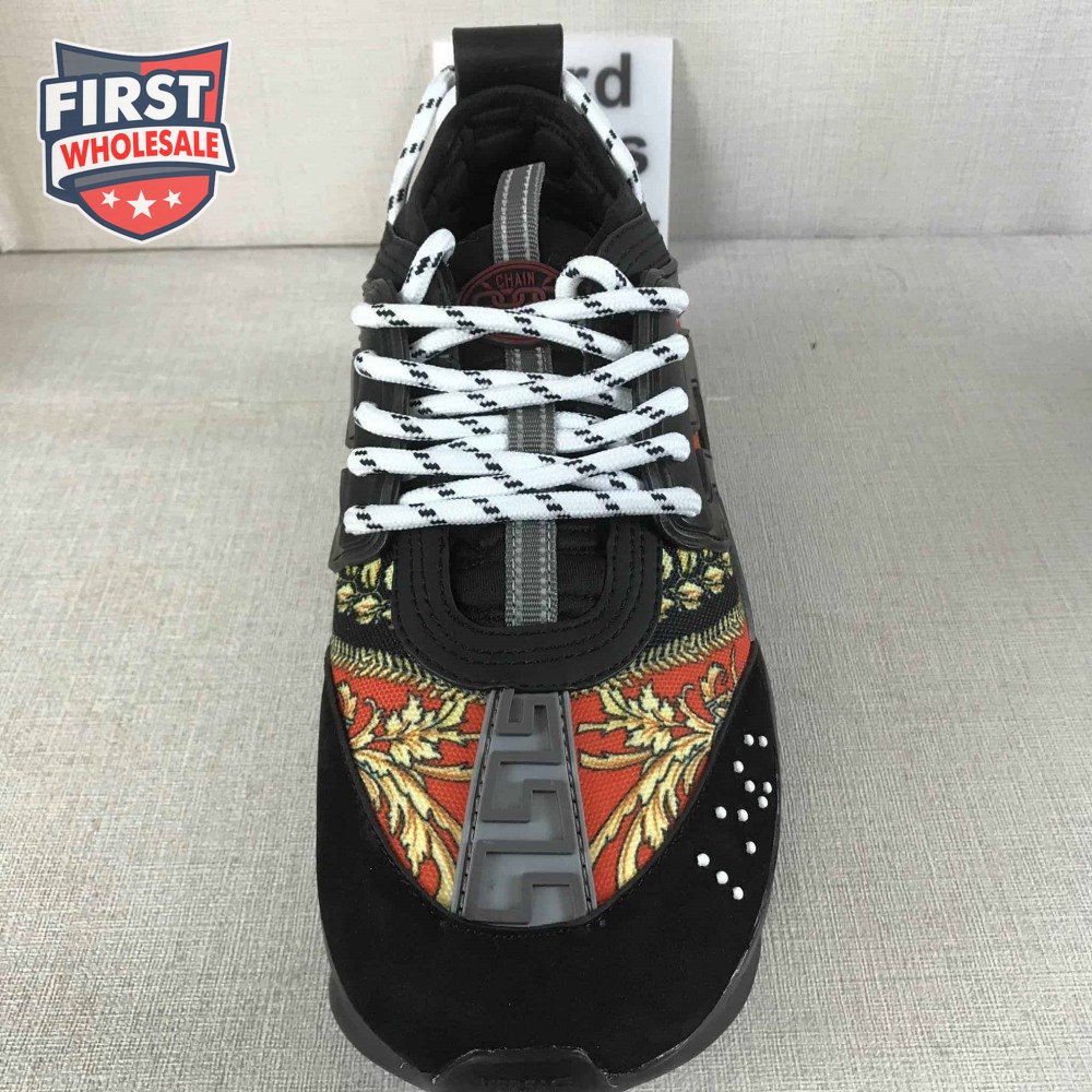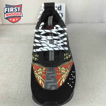 VERSACE BLACK RED AND MULTICOLOURED CHAIN REACTION SNEAKERS - VS18