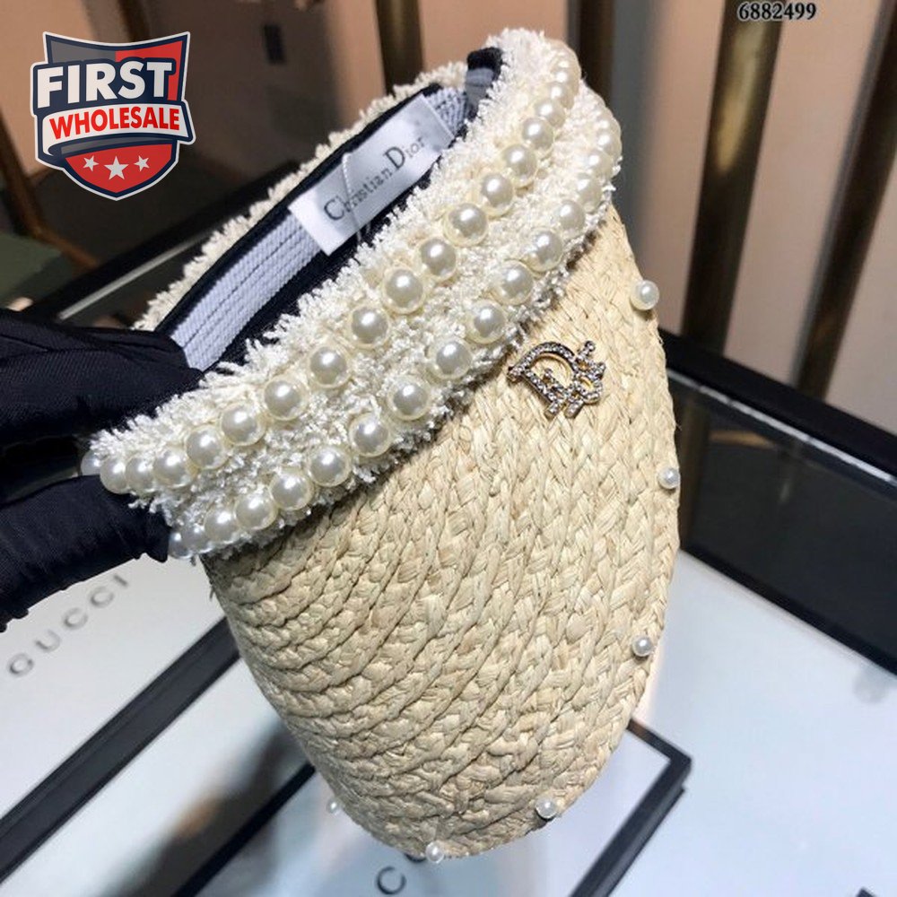Best Christian Dior Natural raffia splicing sun Empty top hat
