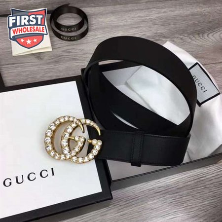 GUCCI BLACK FAUX PEARL-EMBELLISHED LEATHER BELT - B44