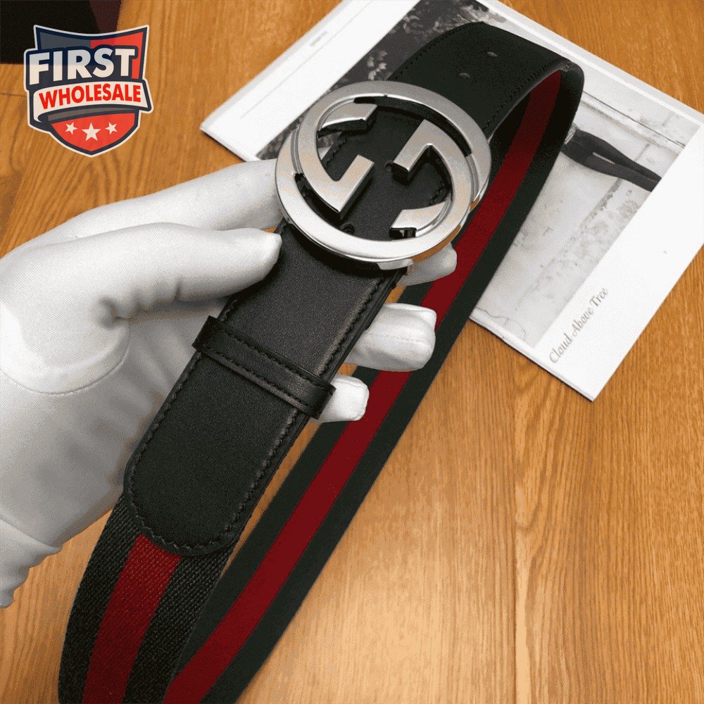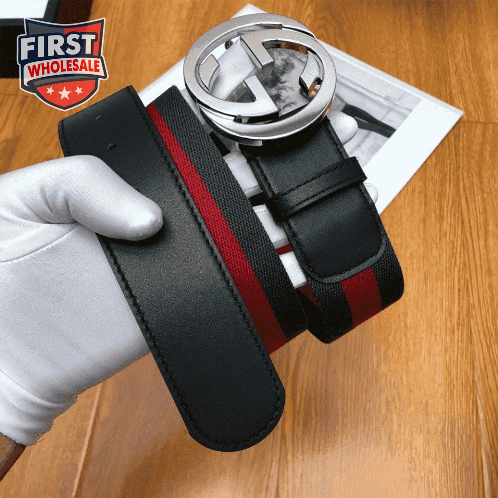 GUCCI MEN'S WEB STRIPED CANVAS BELT - B9