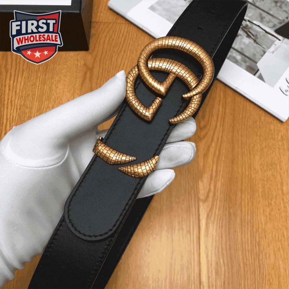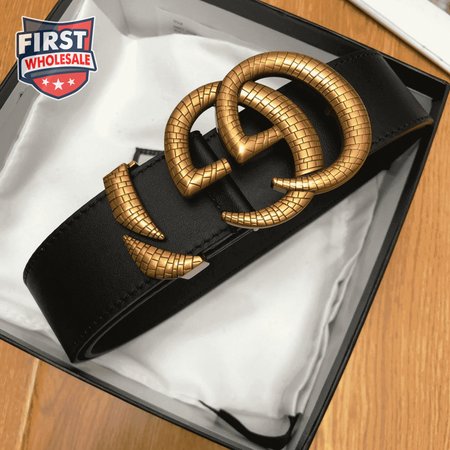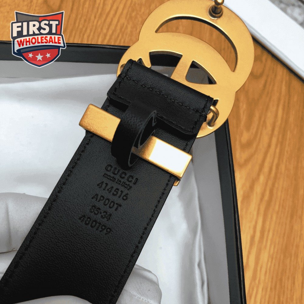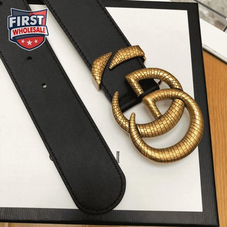 GUCCI LEATHER BELT WITH DOUBLE G BUCKLE - B11