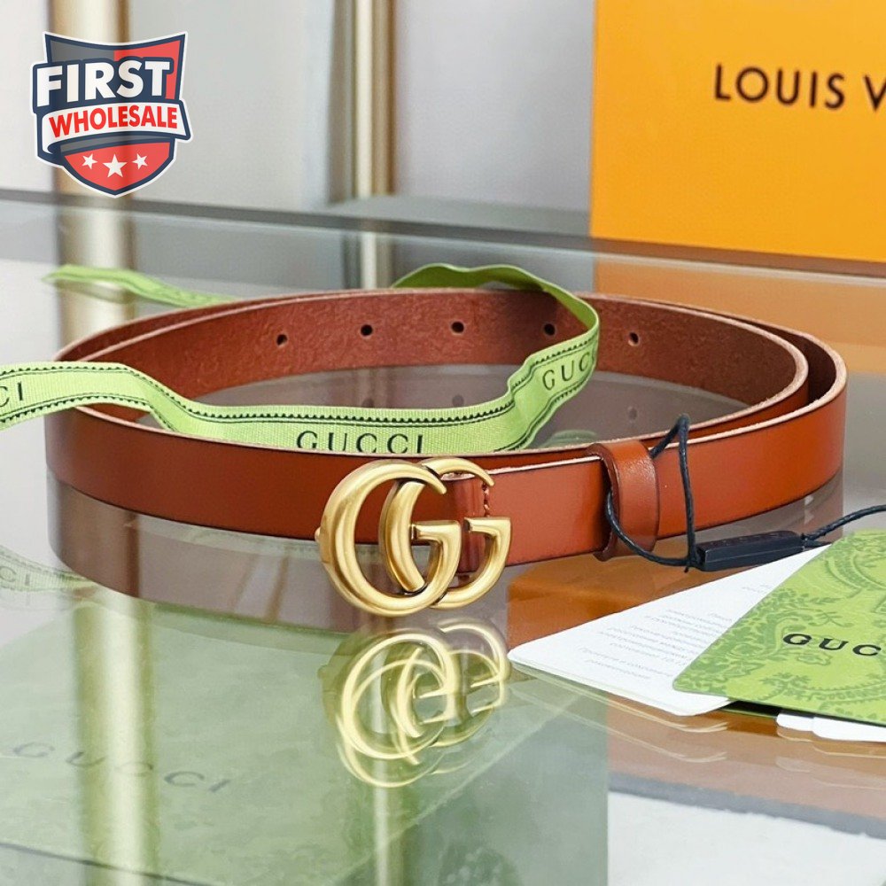 GUCCI LEATHER BELT WITH DOUBLE G BUCKLE