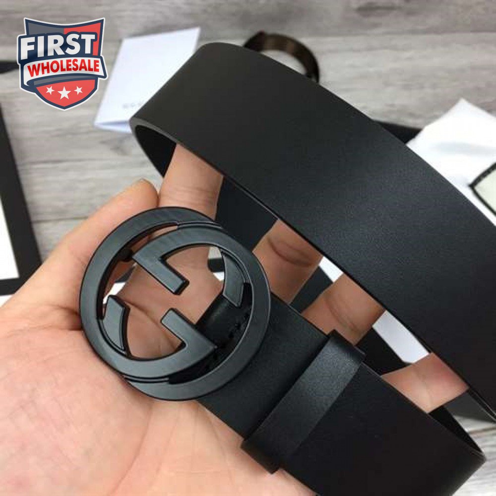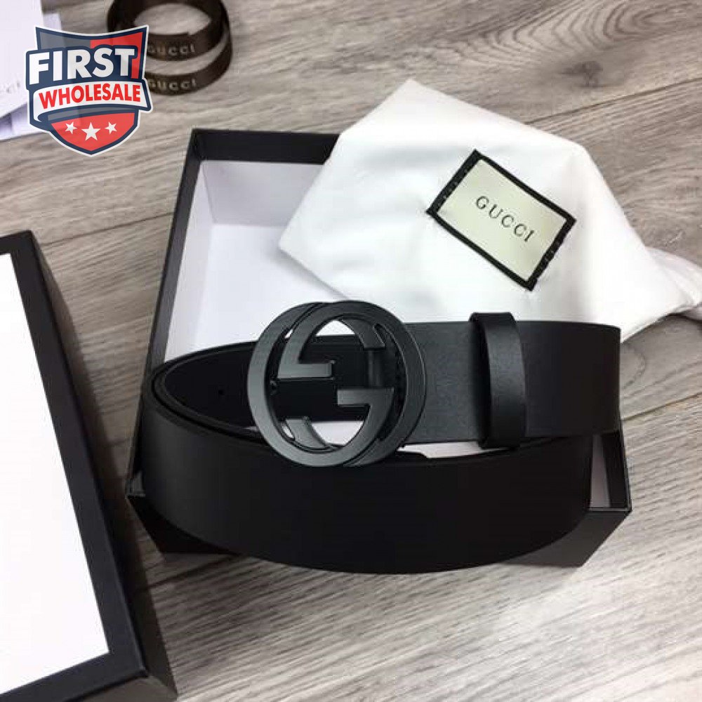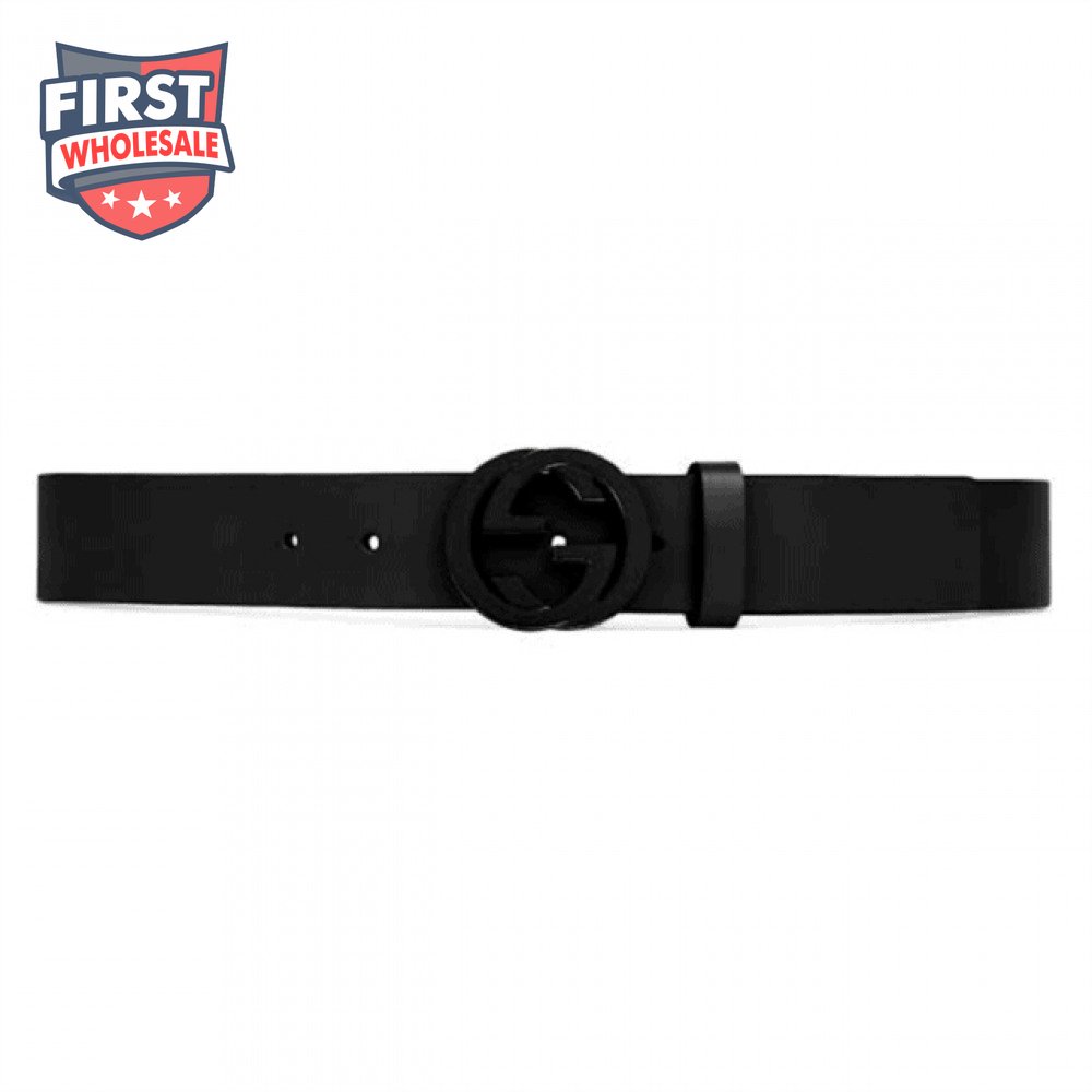 GUCCI LEATHER BELT WITH INTERLOCKING G BUCKLE - B31