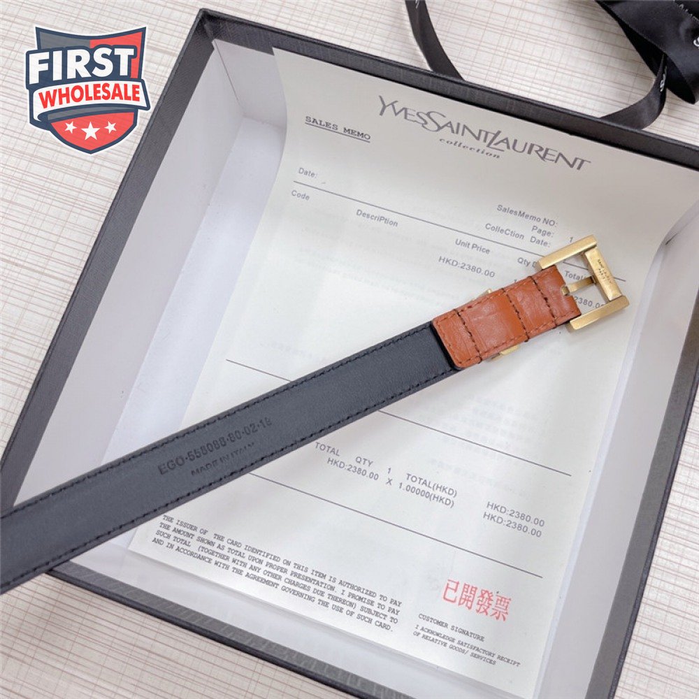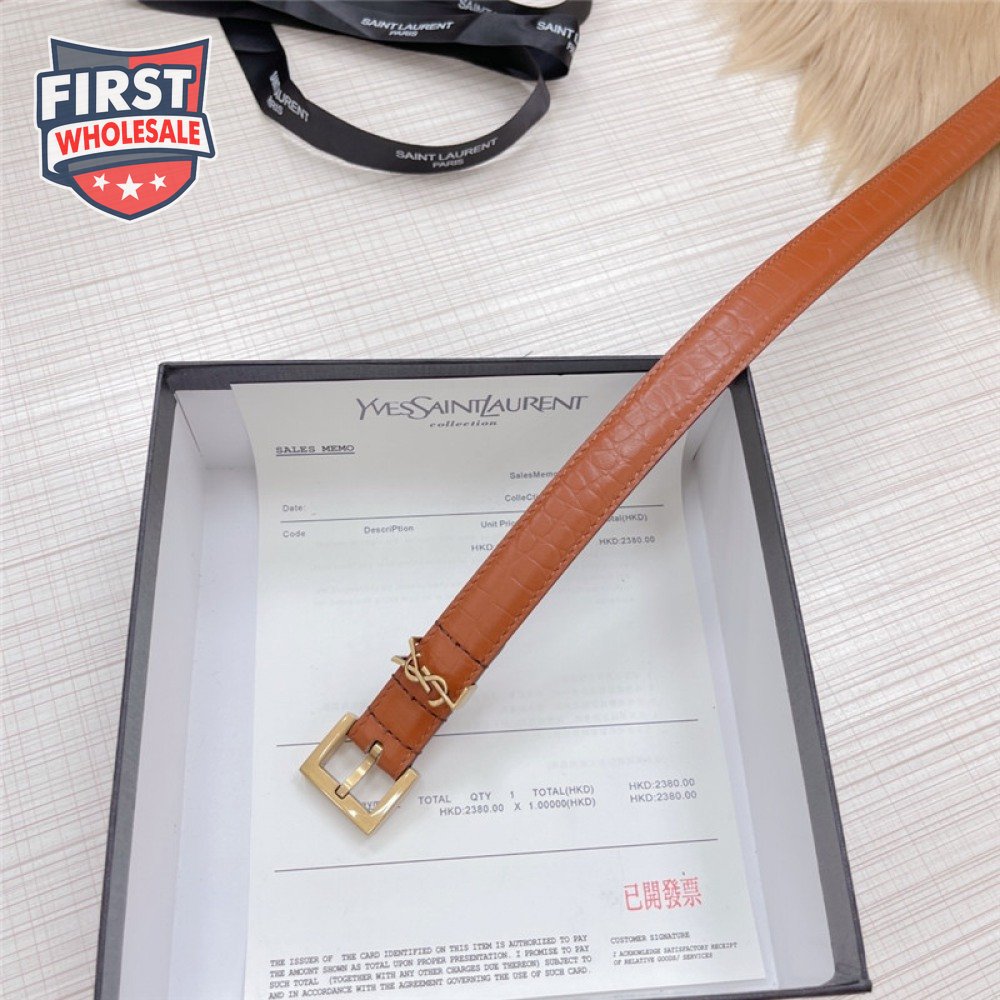 ysl crocodile grain top layer leather belt