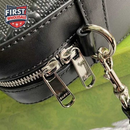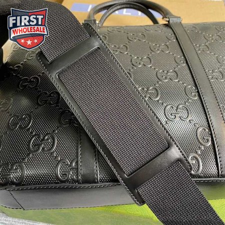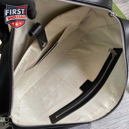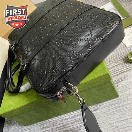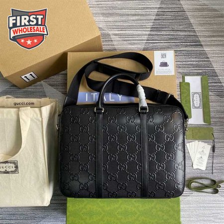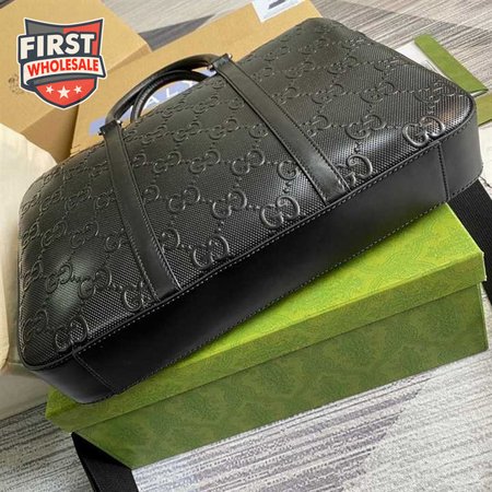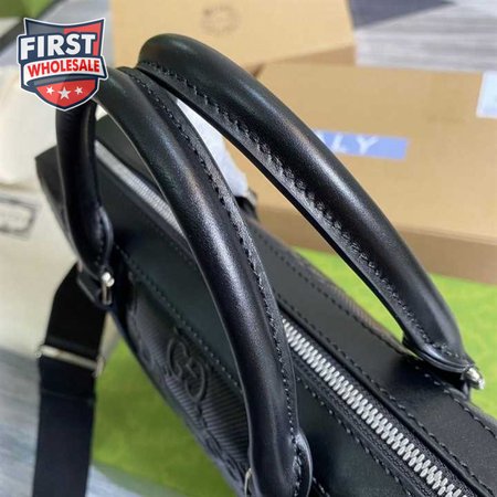 Gucci GG Embossed Briefcase Black Leather Cotton Linen Lining - GBC005