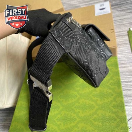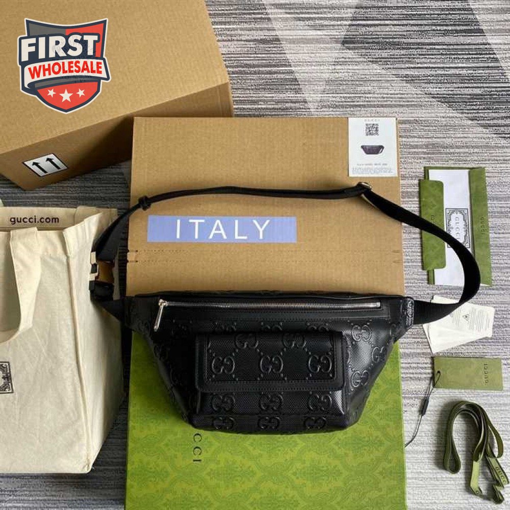 GG EMBOSSED BELT BAG IN BLACK GG EMBOSSED LEATHER - GBC14