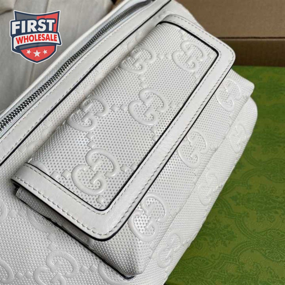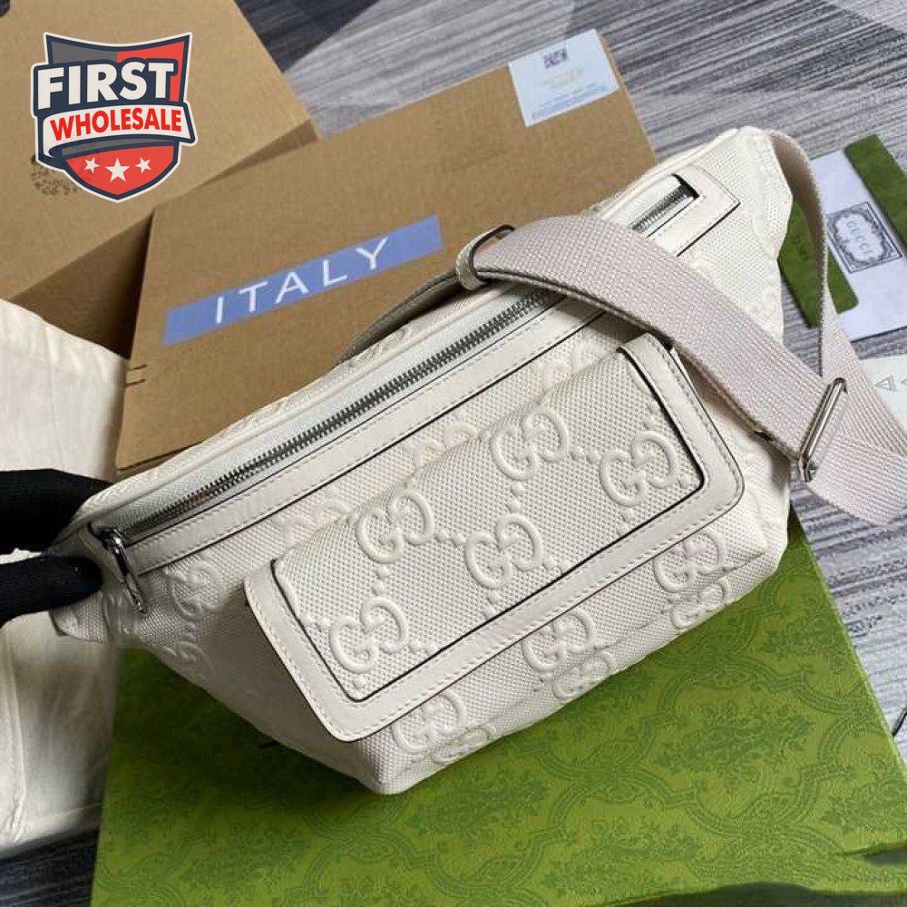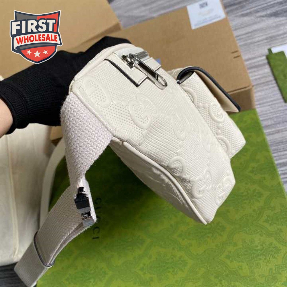 Gg Embossed Belt Bag In White Gg Embossed Leather GBB018